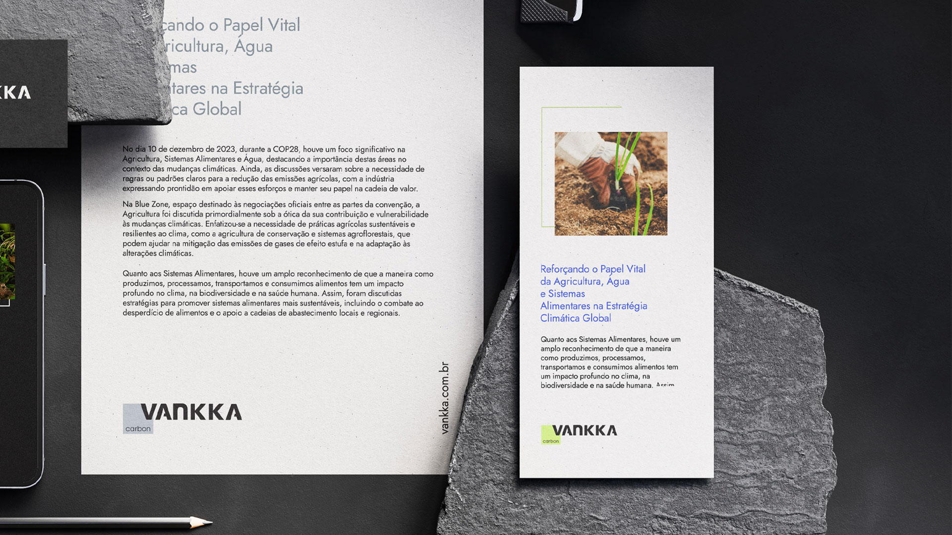 Start the future. Esse é o convite que a Vankka faz ao oferecer soluções em gestão de carbono para empresas. Desenvolvemos esse conceito no rebranding da marca que, então, buscava se posicionar de forma a demonstrar seu pioneirismo em projetos envolvendo a gestão de carbono e também deixar mais evidente o seu core business. Criamos diretrizes estratégicas e de expressão orientadas para demonstração de autoridade, modernidade e sofisticação conferindo à Vankka uma percepção equivalente à experiência e profundo conhecimento de suas lideranças que conduzem projetos pioneiros na área.